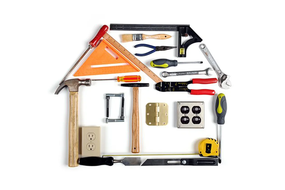 • ابزار دستی ساختمانی مانند چکش تراز کمچه و متر