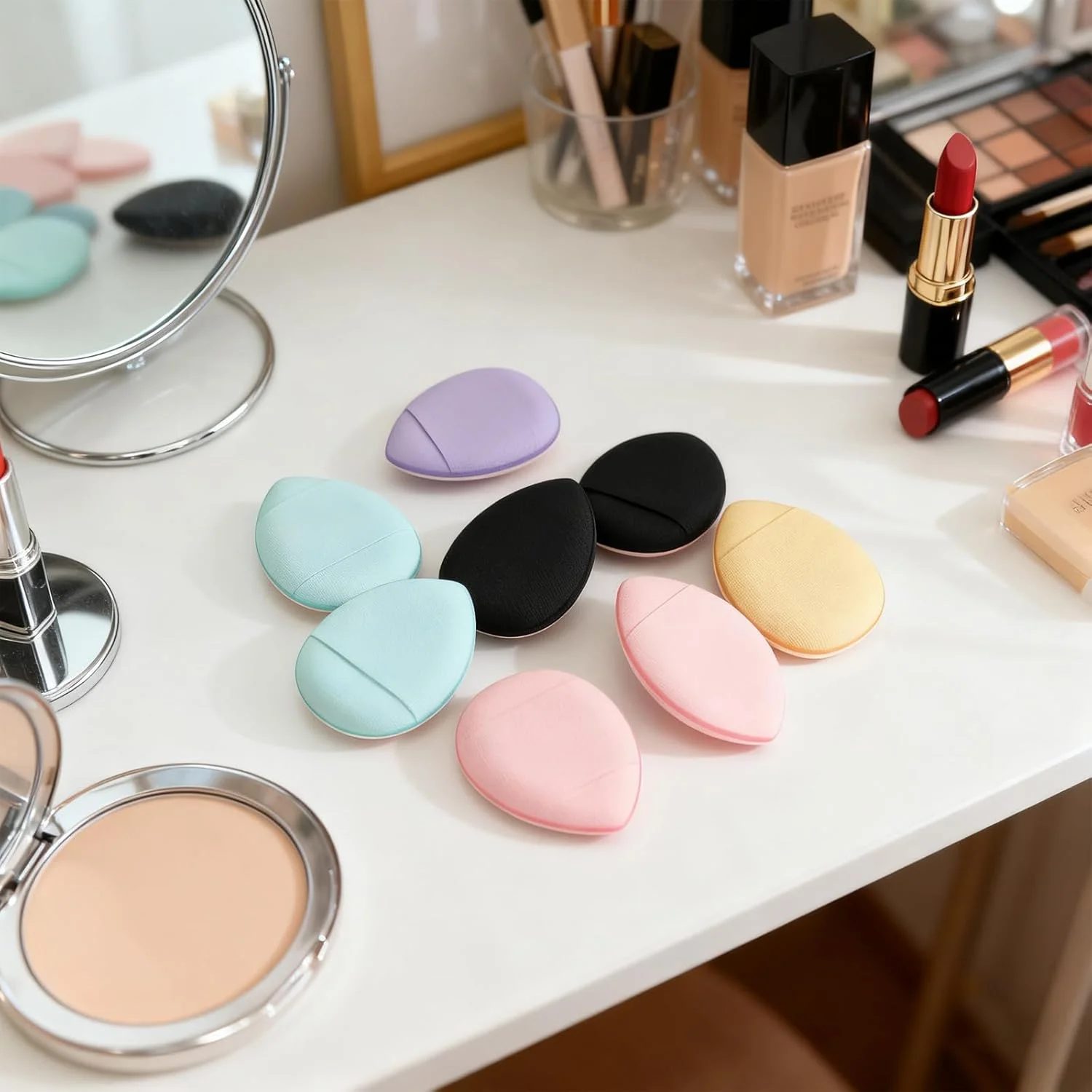 ست اسفنجی مینی آرایشی انگشتی 30 عددی با جعبه نگهداری - بدون لاتکس، دو منظوره (خشک/مرطوب) برای کرم پودر، کانسیلر و سایه چشم - بسته اقتصادی ابزار آرایشی