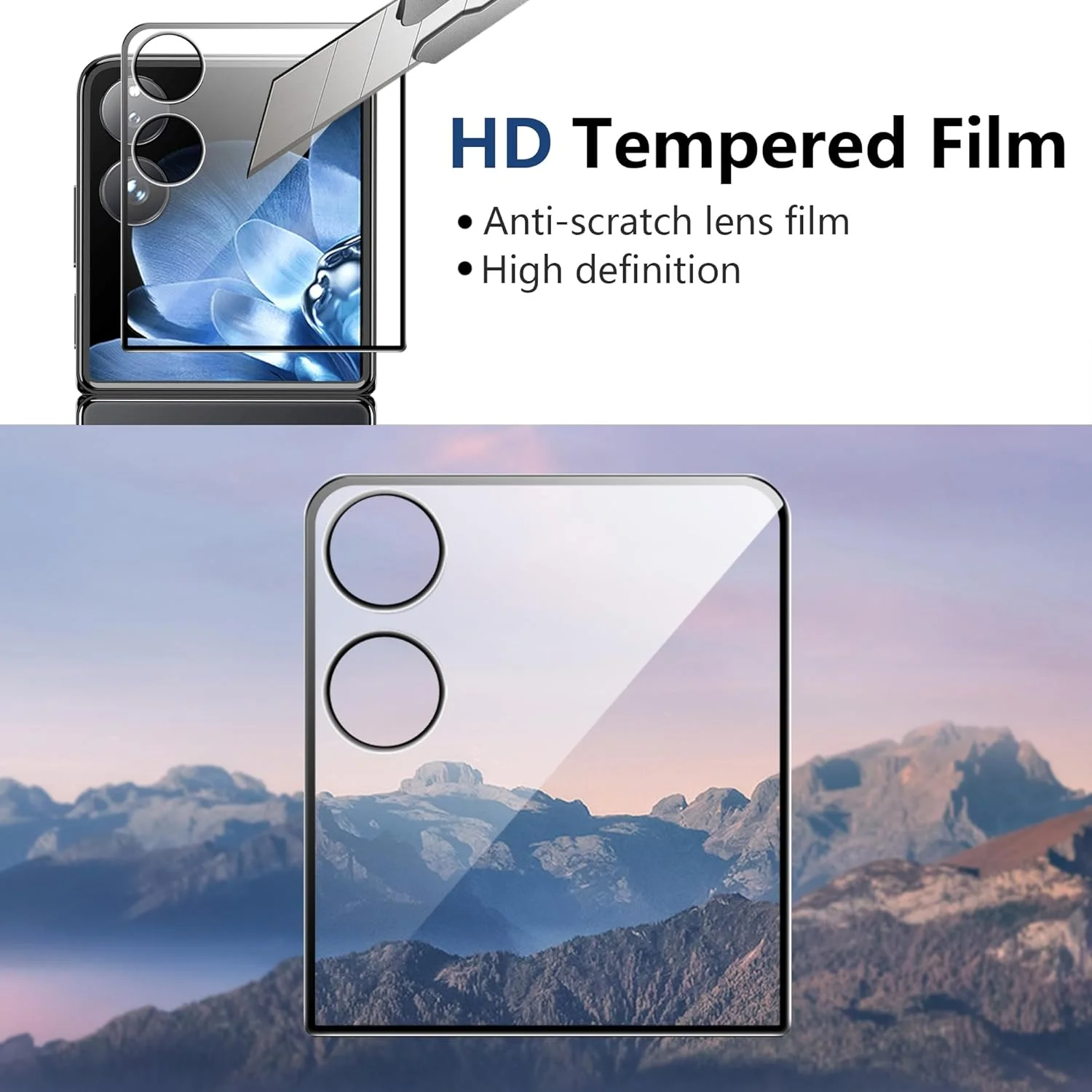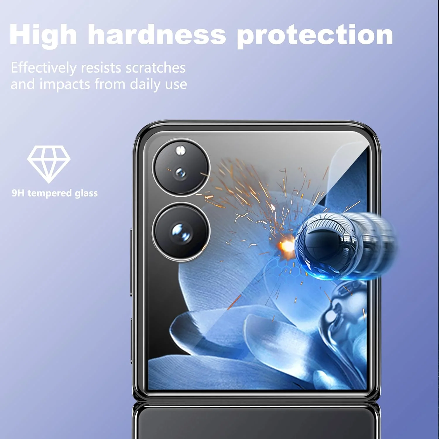 محافظ صفحه نمایش شیشه ای CAUHENYEE برای گوشی شیائومی میکس فلیپ، [2+2] شامل 2 عدد محافظ صفحه نمایش جلو + 2 عدد محافظ لنز دوربین، سختی 9H، مقاوم در برابر خراش و شکستگی