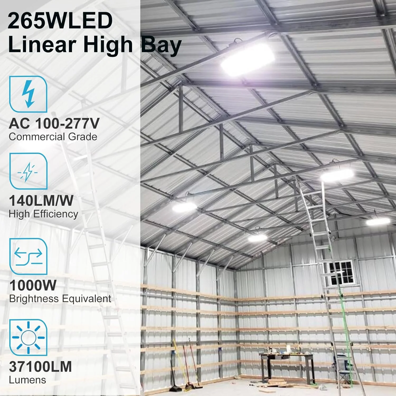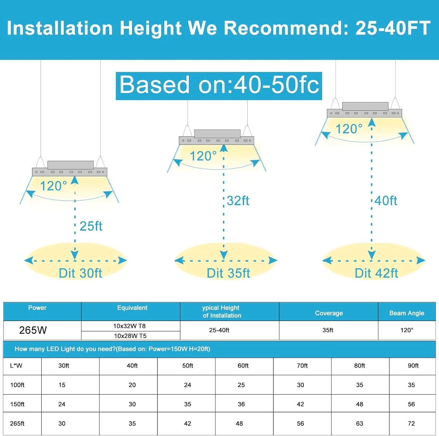 چراغ های کارگاهی ال ای دی های بای Lightdot 4FT با نصب فلاش/آویز، 265 وات [معادل 1000 وات] 5000K 100-277V روشنایی تجاری برای کارگاه گاراژ - سقف 25-40 فوت، پوشش 3000 فوت مربع، مطابق با UL، بسته 4 عددی