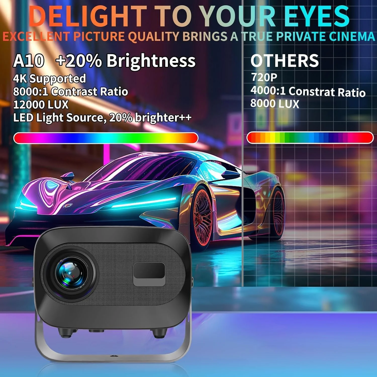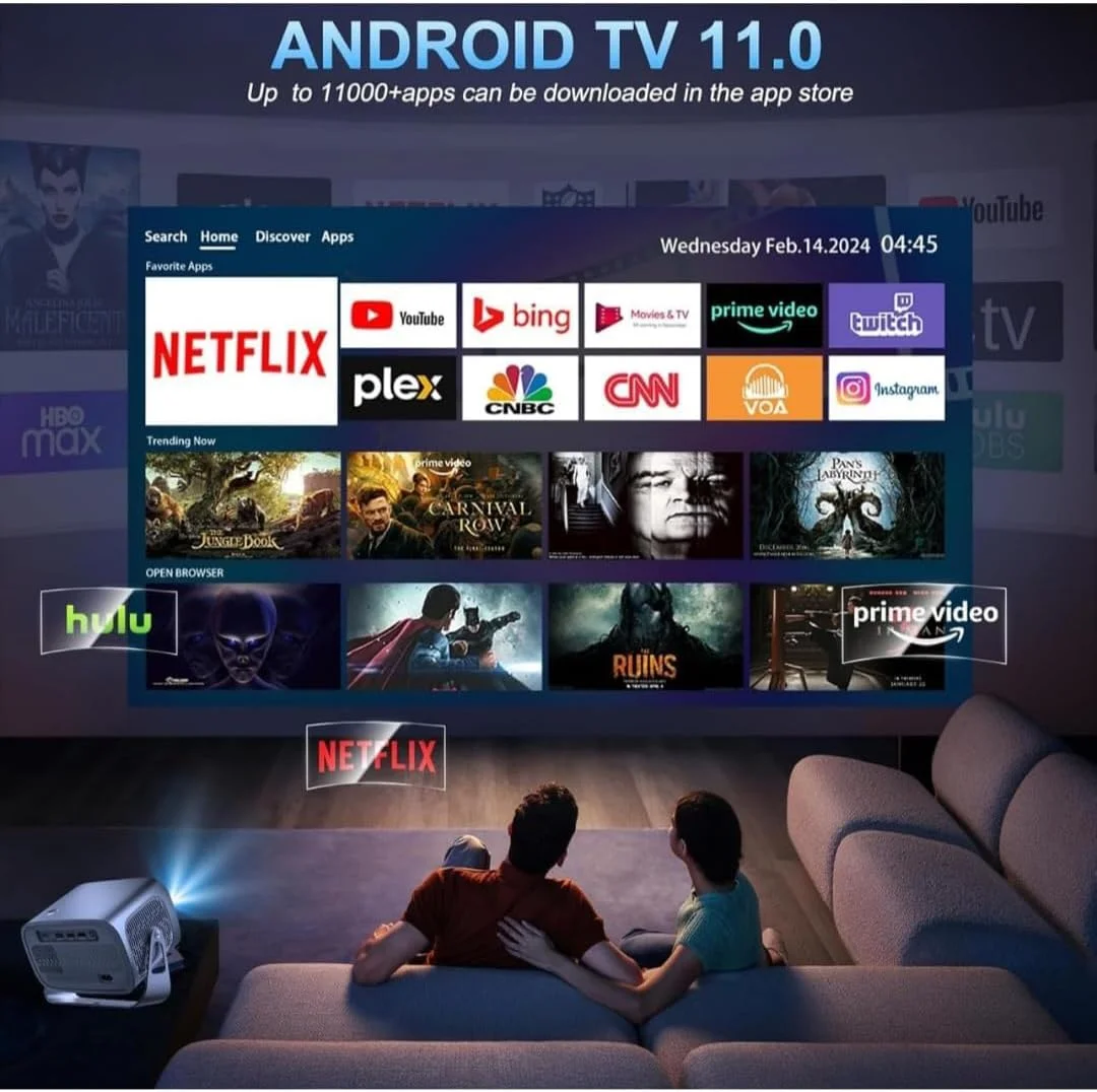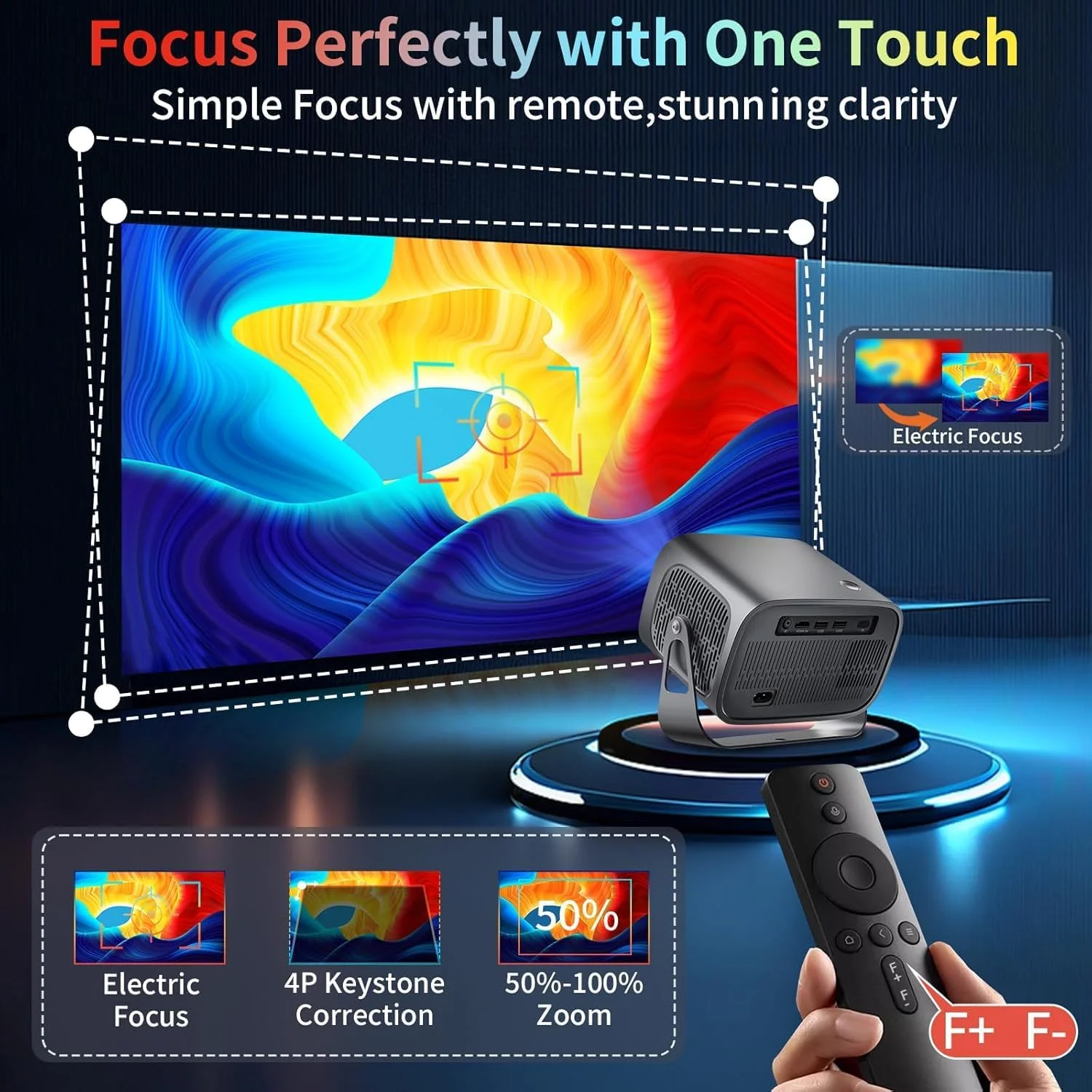 مینی پروژکتور [فوکوس الکتریکی | اندروید 11.0 | پشتیبانی از 4K | 26000 لومن | WiFi 6 و BT5.0 | تنظیم زاویه 360 درجه] پروژکتور سینمای خانگی برای فیلم و استریم