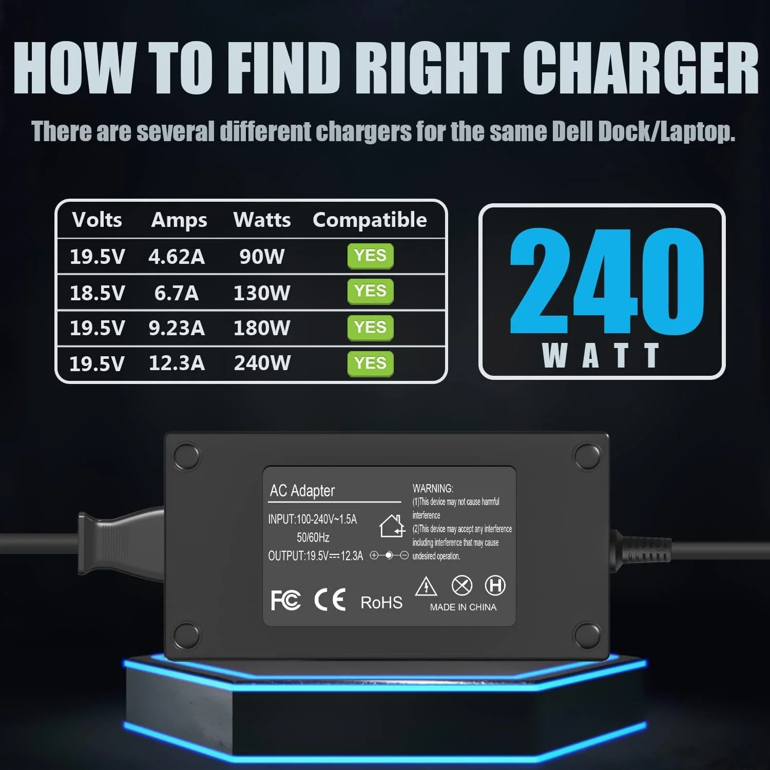 حداکثر توان این شارژر 240 وات است. سازگار با شارژر DELL 180w 90w. لطفاً قبل از خرید، مطمئن شوید که خروجی شارژر OEM شما در لیست سازگار است.