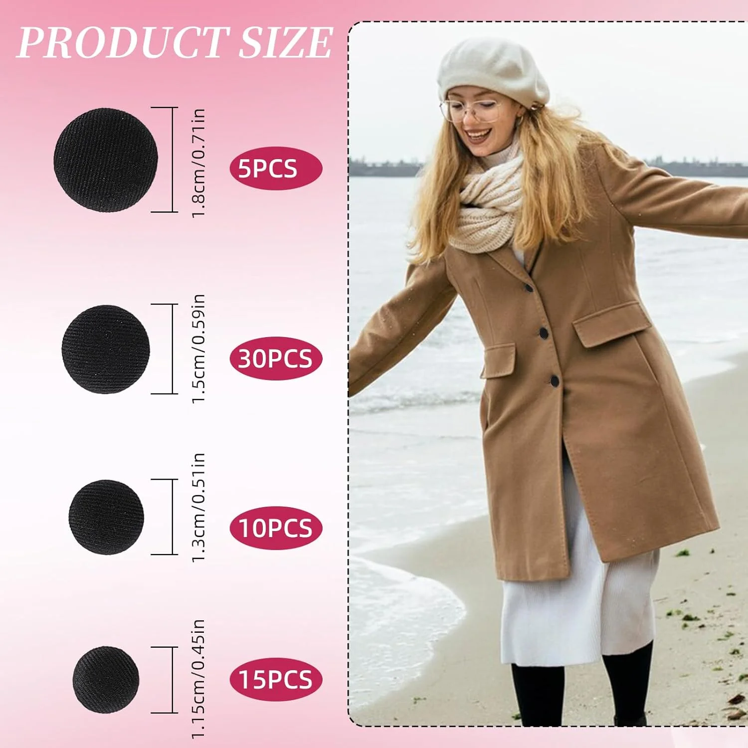 مشخصات فنی: رنگ: مشکی اندازه: 11.5 میلی متر، 13 میلی متر، 15 میلی متر، 18 میلی متر جنس: پارچه محتویات بسته: 60 عدد