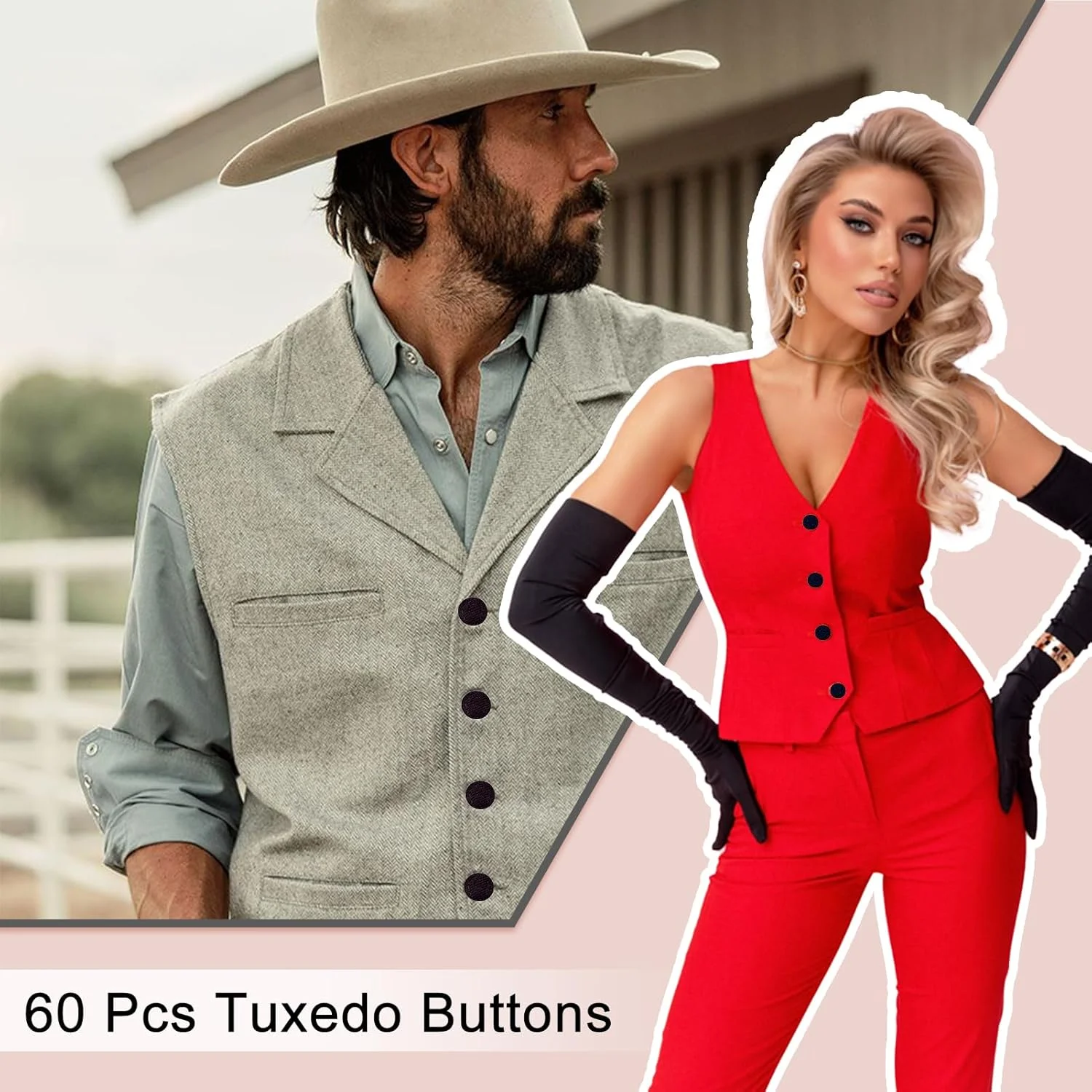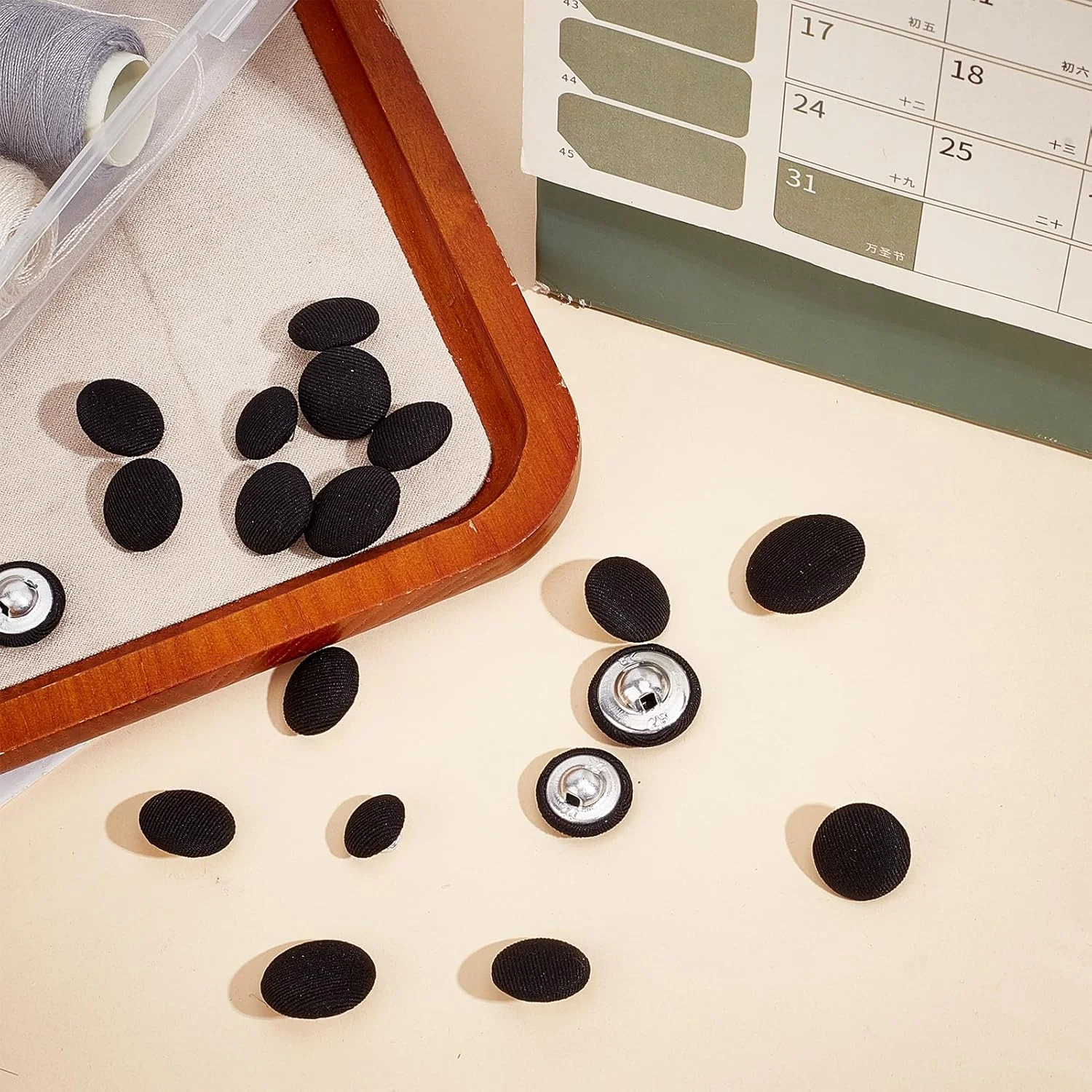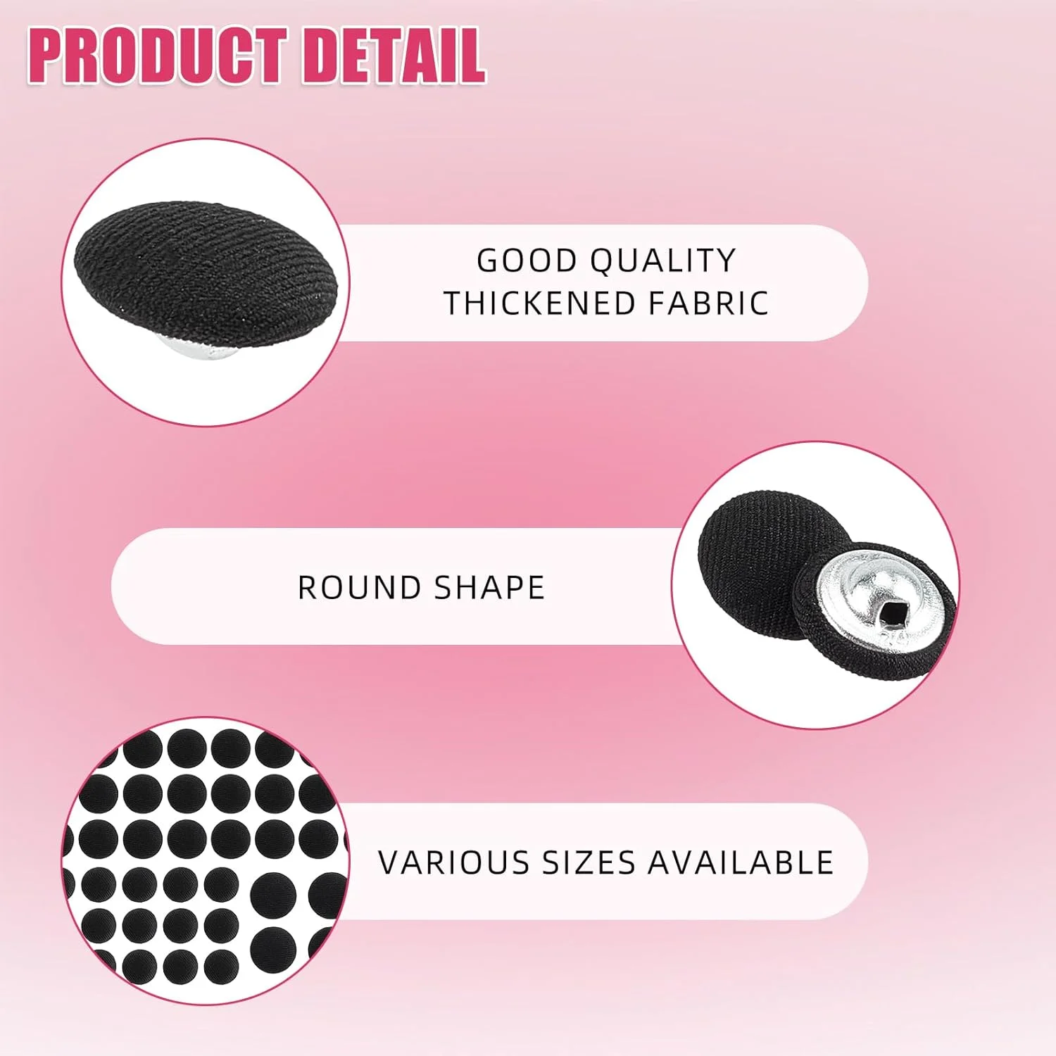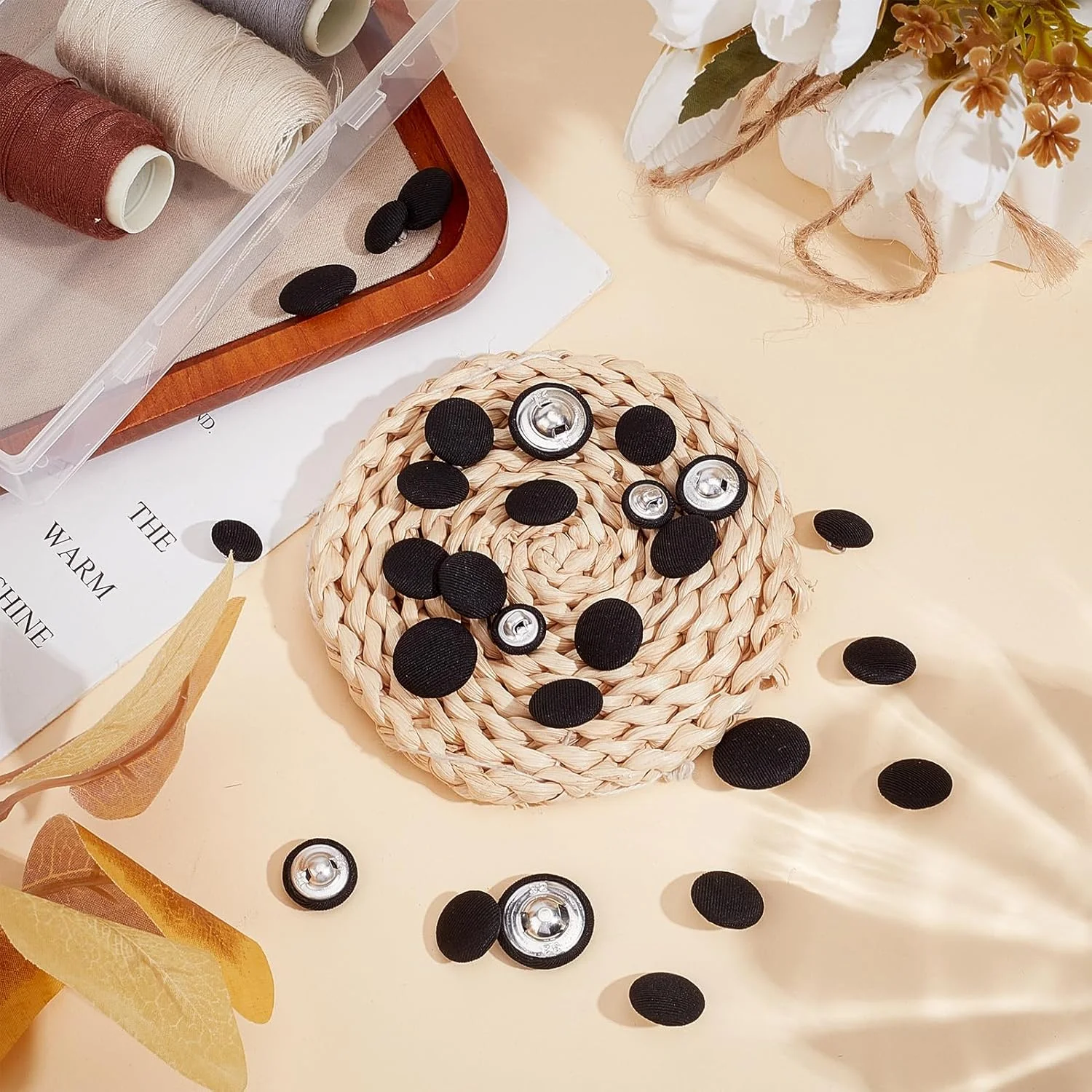 نیسیندد 60 عدد دکمه پارچه ای مشکی روکش دار، دکمه های کت و شلوار تاکسیدو، دکمه های خیاطی گرد فلزی با پایه، لوازم جانبی پوشاک دکمه ای برای لباس عروس، بلوز، ژاکت، کت، شلوار جین