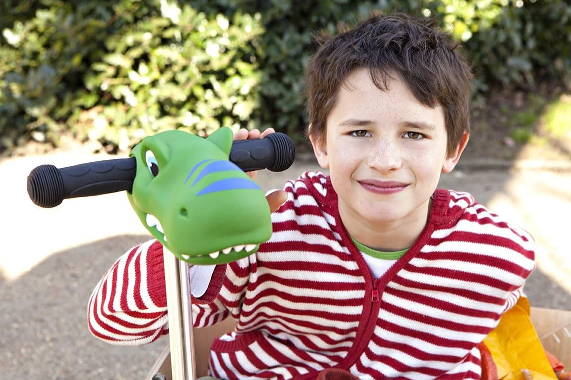Scootaheadz - لوازم جانبی اسکوتر دایناسور - شخصی سازی اسکوتر پسرانه شما - سر اسکوتر دینو برای اسکوتر بچه گانه - اسباب بازی برای پسران 3 سال به بالا - دنی دینو سبز