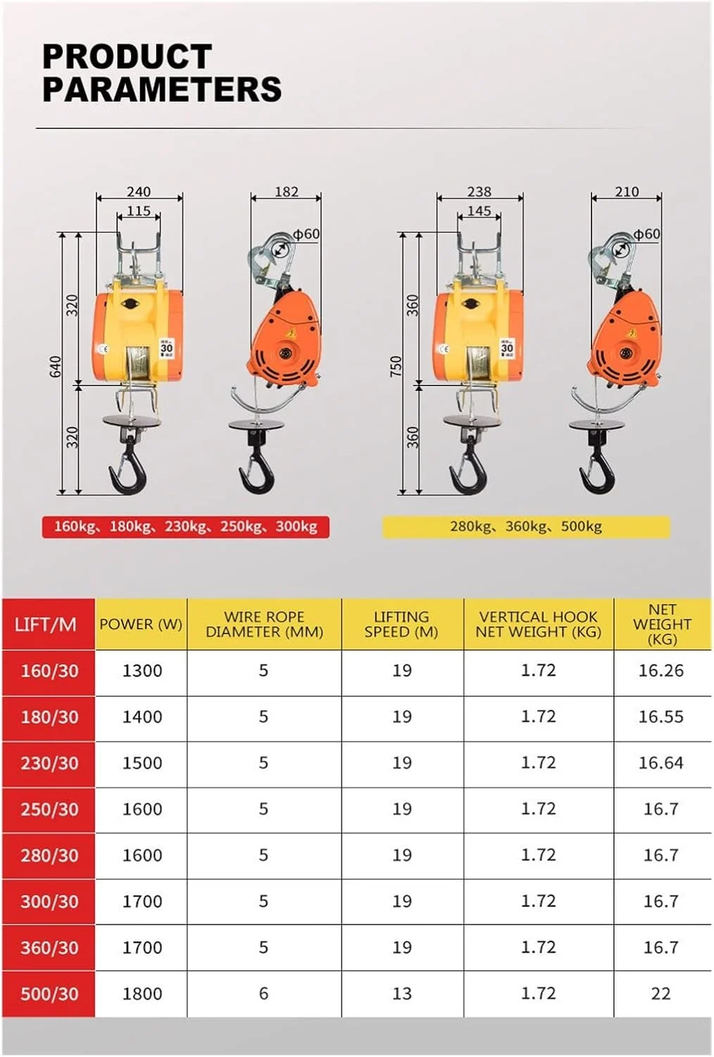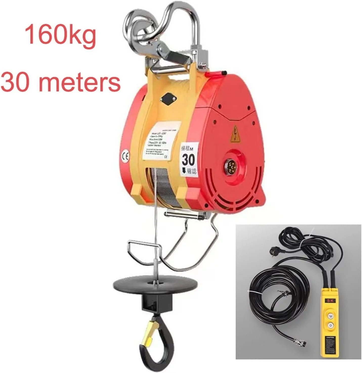 بالابر برقی SEFVGHDF با ظرفیت 300 کیلوگرم و طول سیم 30 متر، 220 ولت، بالابر برقی کوچک خانگی، جرثقیل کوچک بالابر با قلاب دوبل (سایز: 160 کیلوگرم 30 متر)