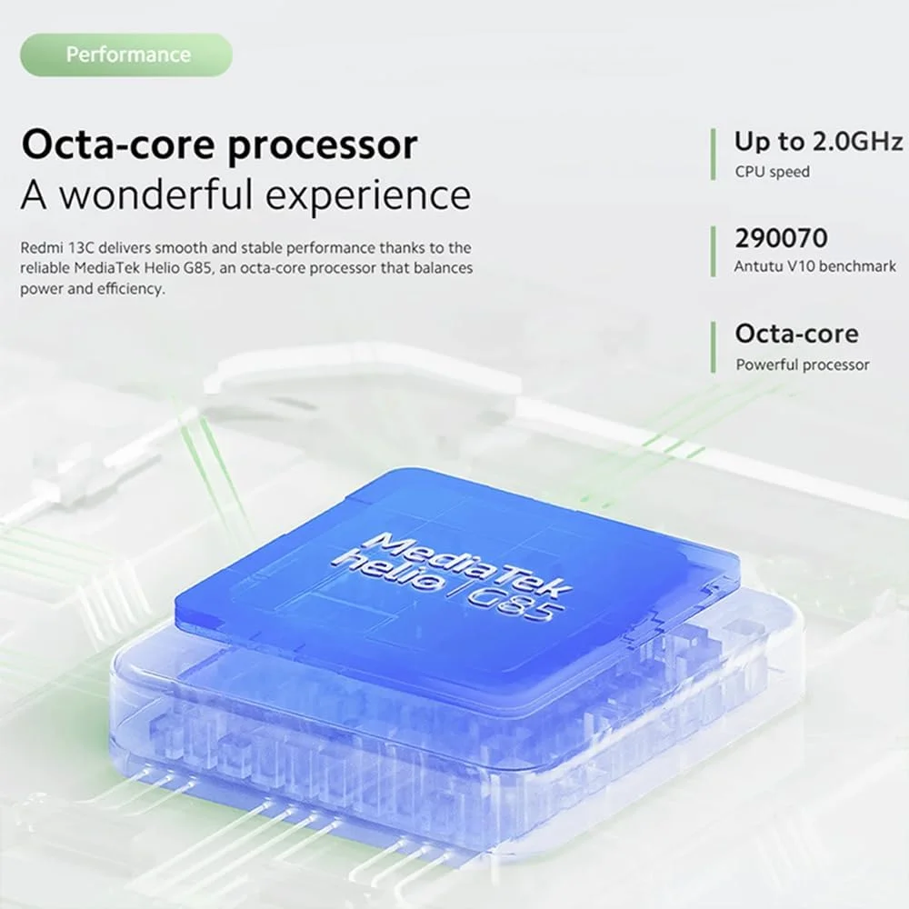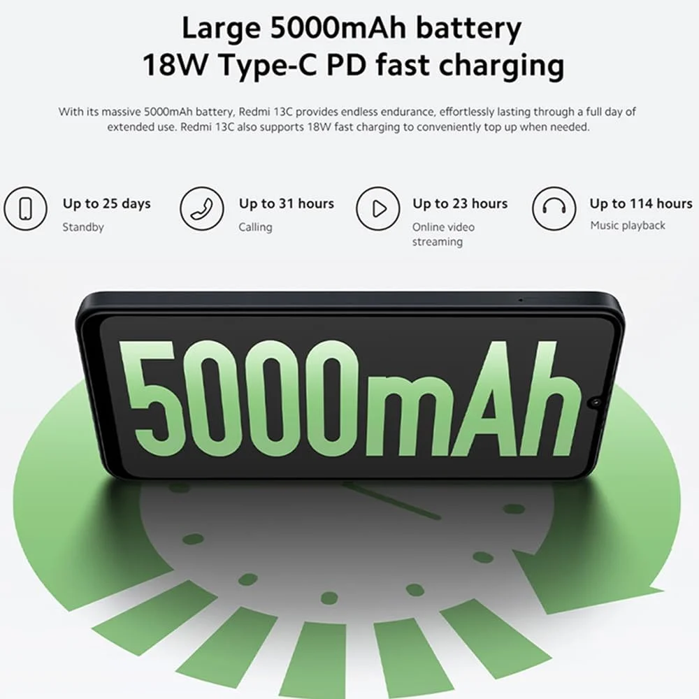 گوشی موبایل شیائومی Redmi 13C (رم 8 گیگابایت + حافظه داخلی 256 گیگابایت) 168 X 78 X 8.1 میلی متر مشکی نیمه شب