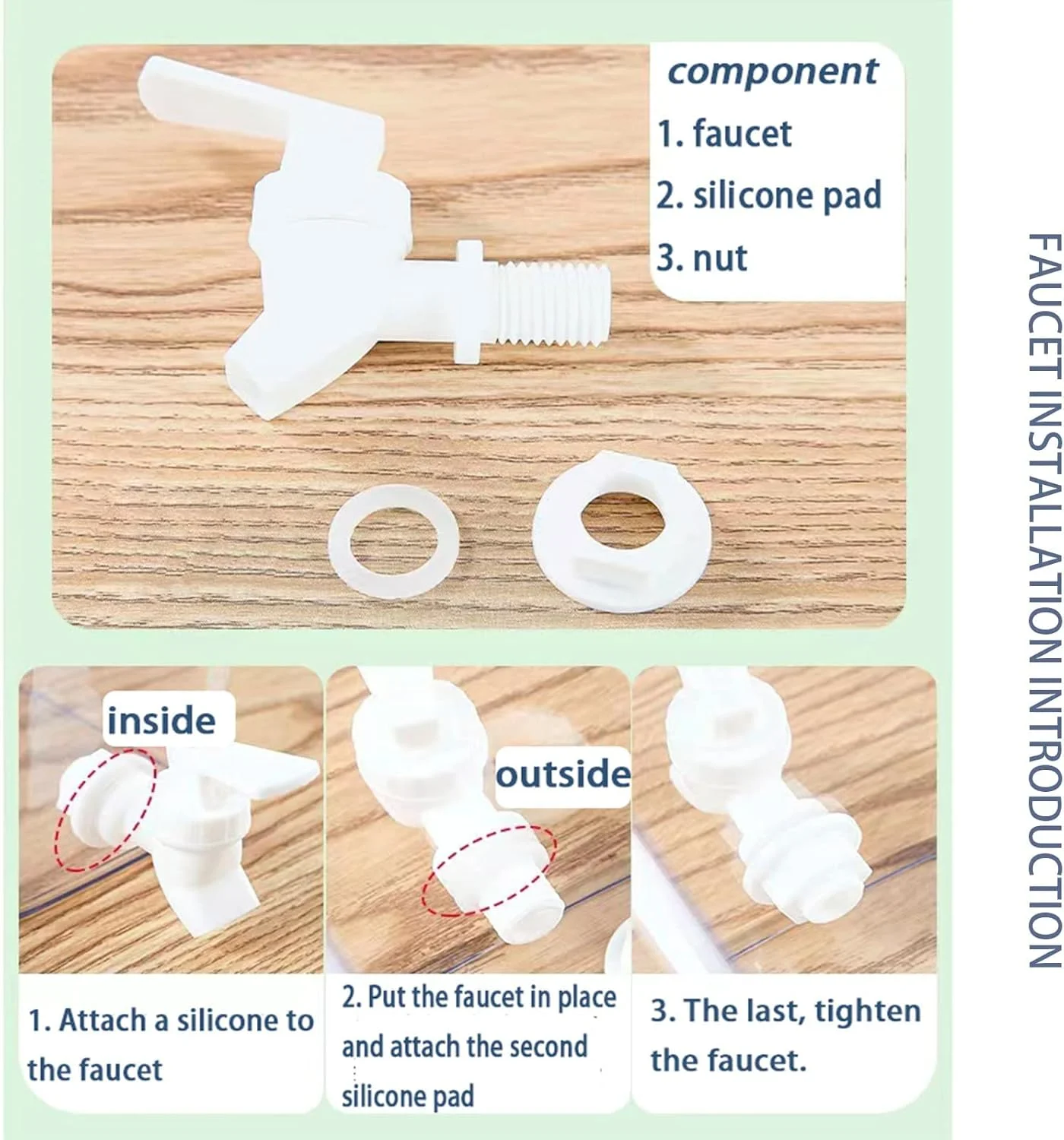 مشخصات دیسپنسر نوشیدنی یخچال ابعاد محصول: 7.87 طول اینچ × 5.6 عرض اینچ × 7.56 ارتفاع اینچ (اندازه گیری دستی، ممکن است خطاهای جزئی وجود داشته باشد) وزن مورد: 0.99 اونس برای هر کدام ظرفیت: 3.5 لیتر رنگ: شفاف جنس: مواد PET ضخیم شده درجه مواد غذایی شکل: مستطیلی بسته بندی: کوزه نوشیدنی × 1 بسته بطری های دیسپنسر نوشیدنی با ظرفیت بزرگ دیسپنسر بطری ما می تواند 3.5 لیتر مایع را به دلیل ظرفیت زیاد خود نگه دارد، بدون نگرانی از پر کردن مداوم. ظاهر شفاف ظاهر شفاف باعث می شود به راحتی بتوان مایع باقیمانده را مشاهده کرد. شکل فشرده با شکل فشرده، ظرف شیر ما می تواند در یخچال، زیر کابینت، سینک یا هر مکان کوچک دیگری قرار گیرد. پایه برجسته به منظور محافظت از ظرف صابون لباسشویی خود در برابر لغزش، پایه برجسته ای را در پایین آن طراحی کردیم.
